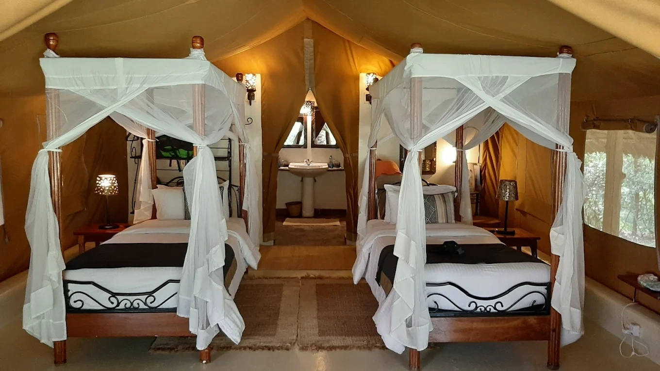 Dining is centered around the Flamingo Restaurant, which serves local and international cuisine with scenic views of the park. The Rift Valley Bar and outdoor terrace are ideal spots for sundowners while watching flamingos or wildlife along the shore.