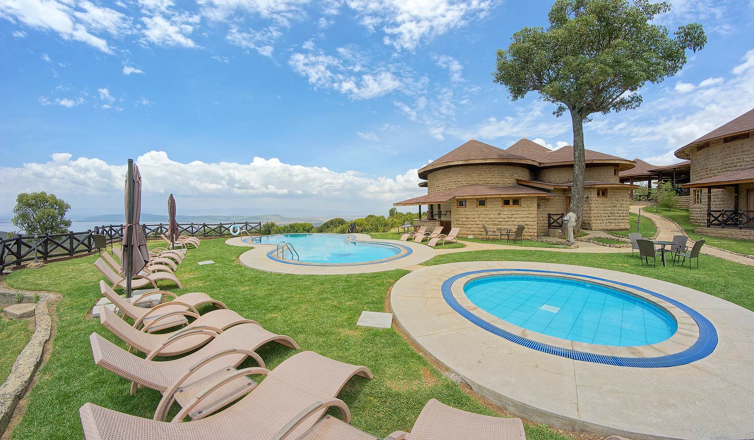 Sarova Lion Hill Game Lodge is set along Lion Hill inside Lake Nakuru National Park, perched on elevated ground with panoramic views over Lake Nakuru and the surrounding Rift Valley scenery. Its strategic location offers excellent wildlife viewing — including flamingos, rhinos, giraffes, buffalo, and more — directly from the lodge and its grounds.
